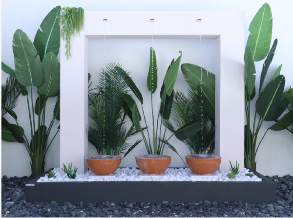 يأتي الشلال بتصميم أنيق من الإطار العصري مع أحواض فخارية ونباتات صناعية تمنحك شعوراً بالهدوء والاسترخاء.