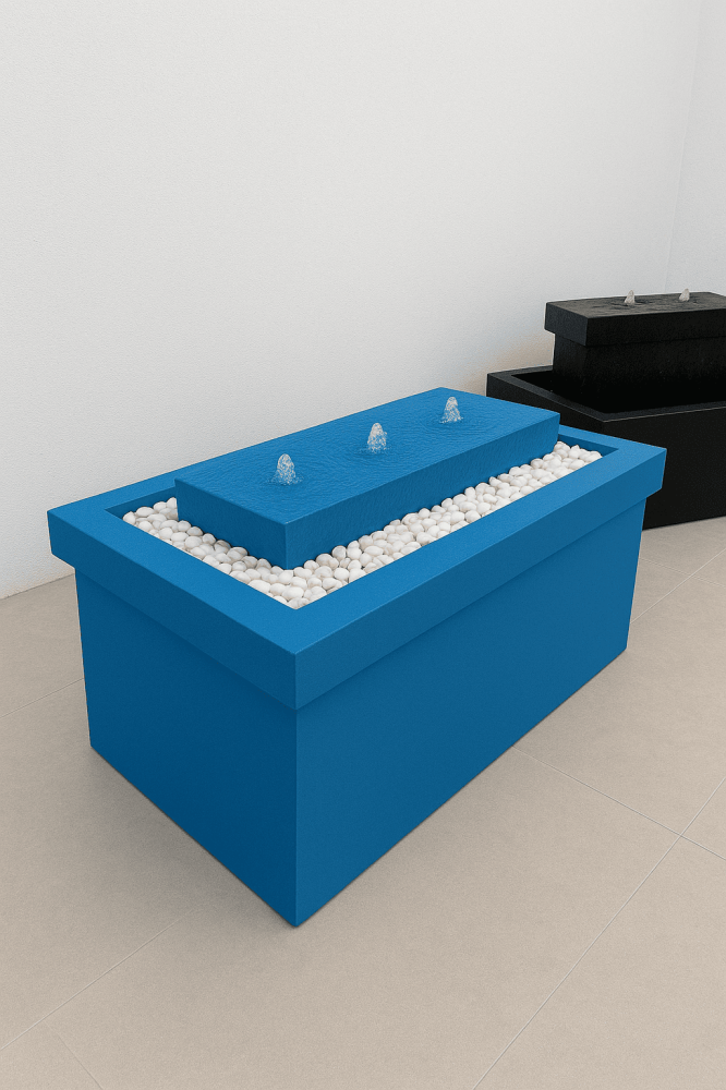 أضف لمسة راقية لأركان منزلك أو مكتبك مع النافورة الداخلية العصرية بلون ازرق لامع وتصميم مستطيل أنيق.